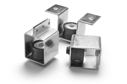 Gama diseñada para la suspensión de falsos techos acústicos y maquinaria trabajando a partir de 1.000 r.p.m. En toda la gama se mantiene el mismo elemento antivibratorio fabricado en caucho de gran calidad mecánica y especialmente diseñado para el aislamiento vibratorio. La estructura metálica es resistente a más de 1.000 kg y recubierta de baño electrolítico bicromatado