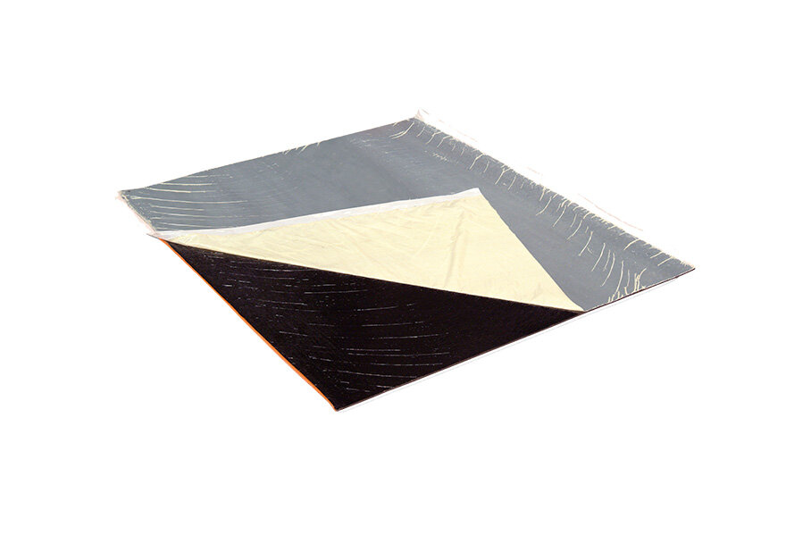 Lámina viscoelástica de alta densidad, armada, de base bituminosa aditivada con polímeros. Esta lámina está desarrollada para la mejora del aislamiento acústico en placas de yeso laminado debido a: